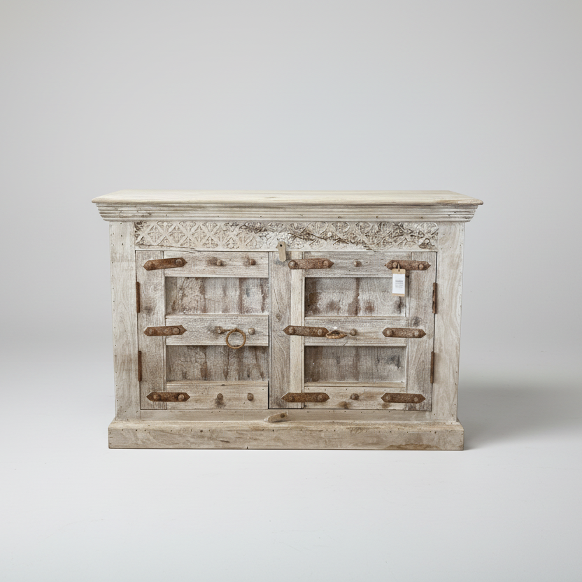 Kediri White Wash Carved Teak Vanity 120cm