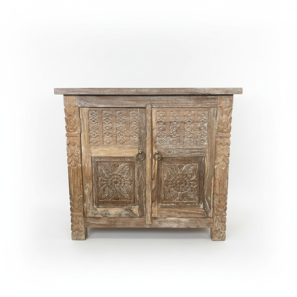 Indah White Wash Carved Teak Vanity - 90cm Length