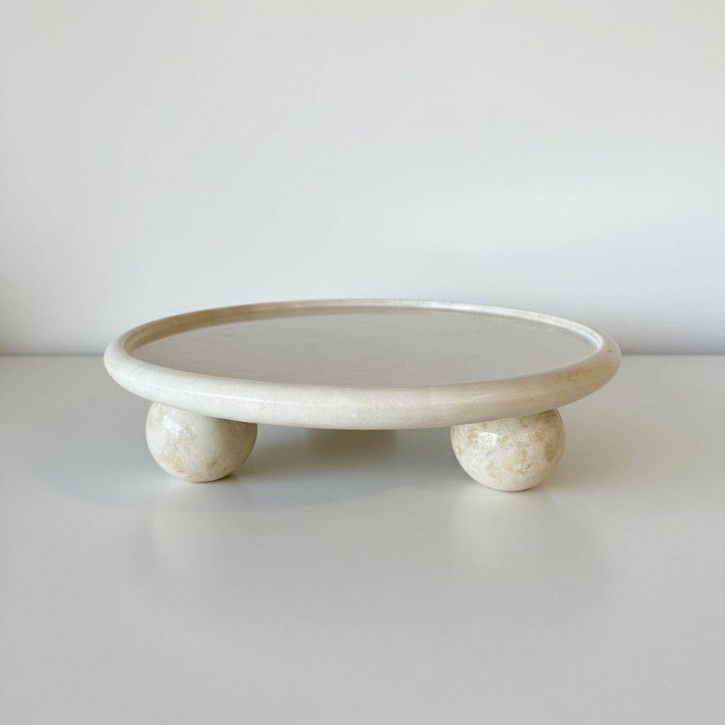 Beige Marble Round Footed Platter