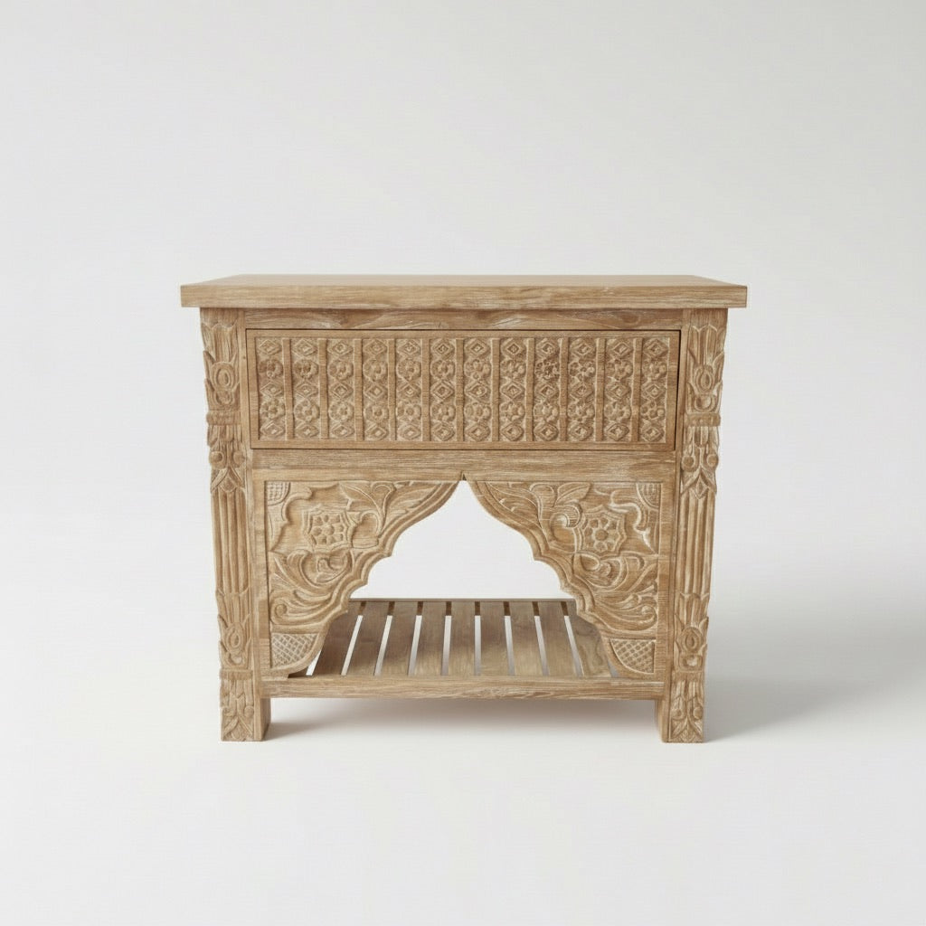 Kalak White Wash Carved Teak Vanity - 75cm Length